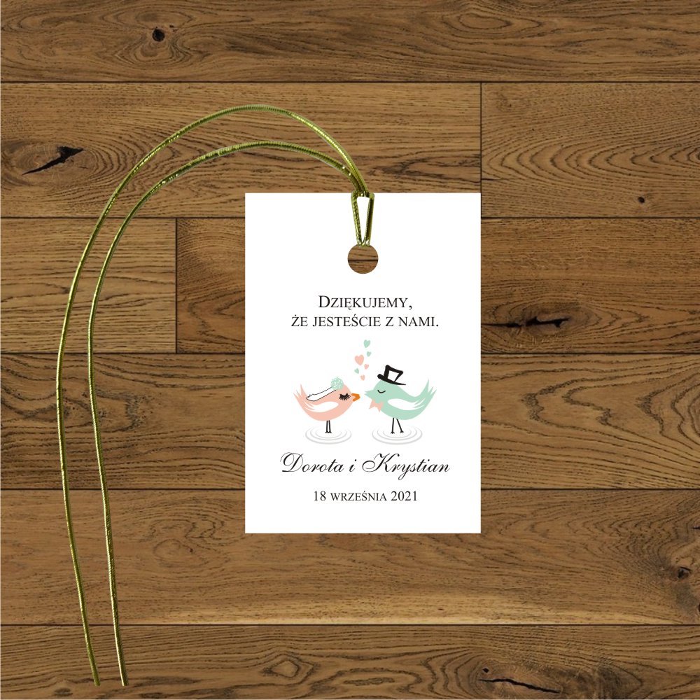 Ptaszki - łosoś i mięta - papier biały - ze sznurkiem bielonym