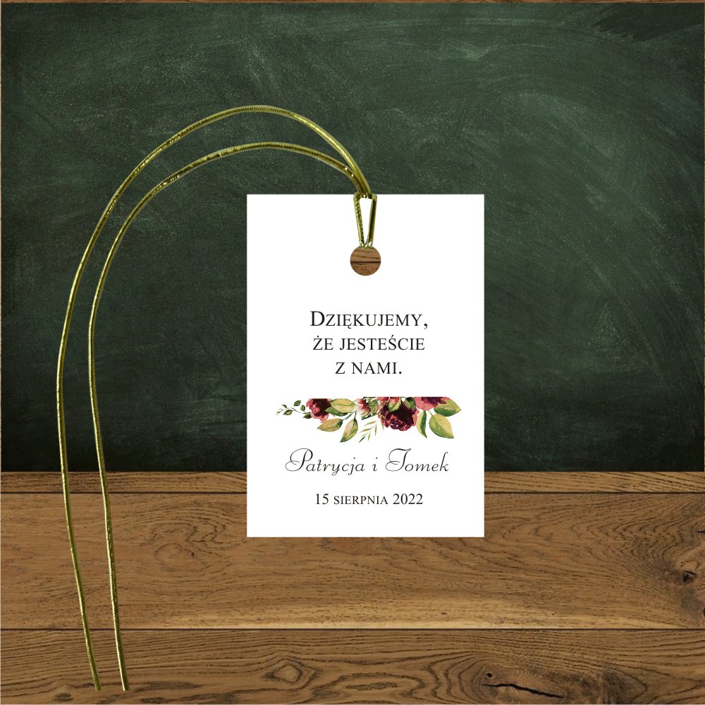 Zawieszki na prezenty- Kwiaty bordo i gałązki