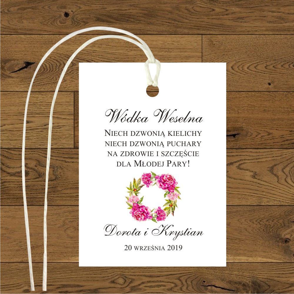 Przywieszki do prezencików Piwonie wianek ciemny róz