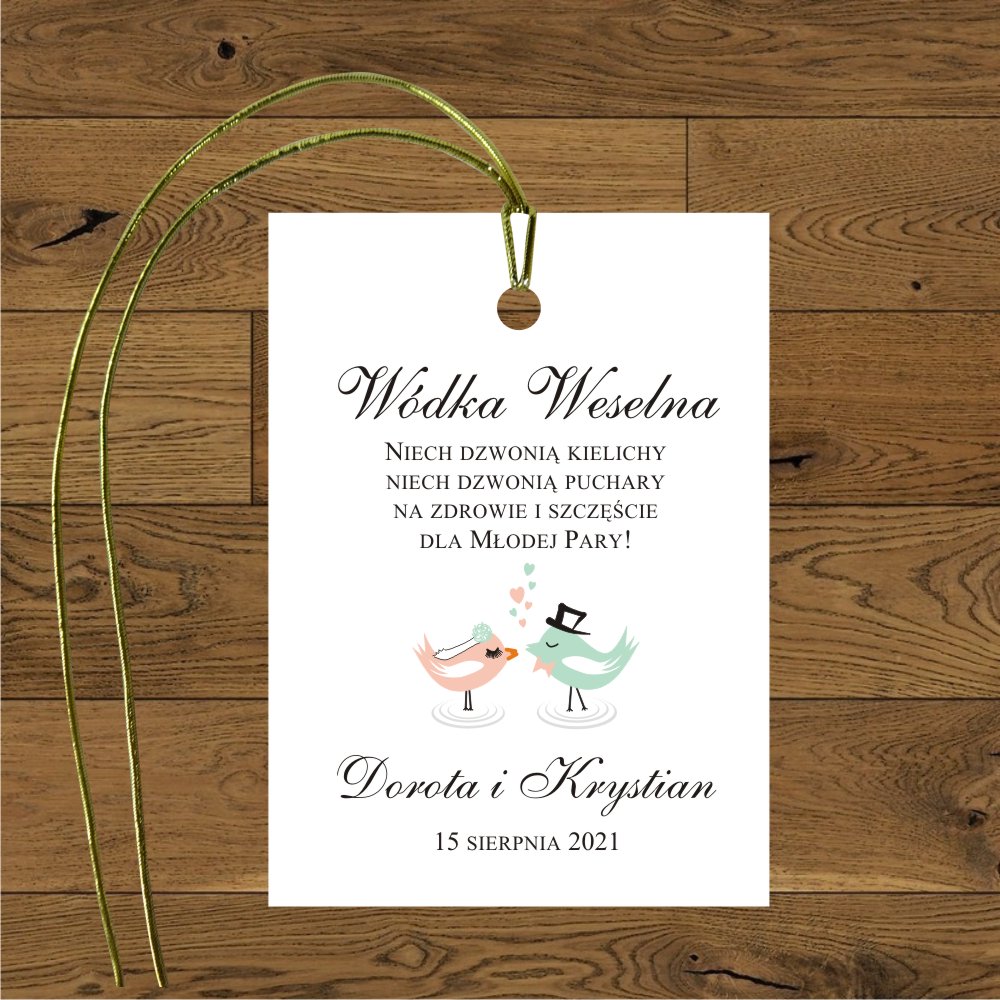 Ptaszki - łosoś i mięta - papier biały - ze sznurkiem bielonym