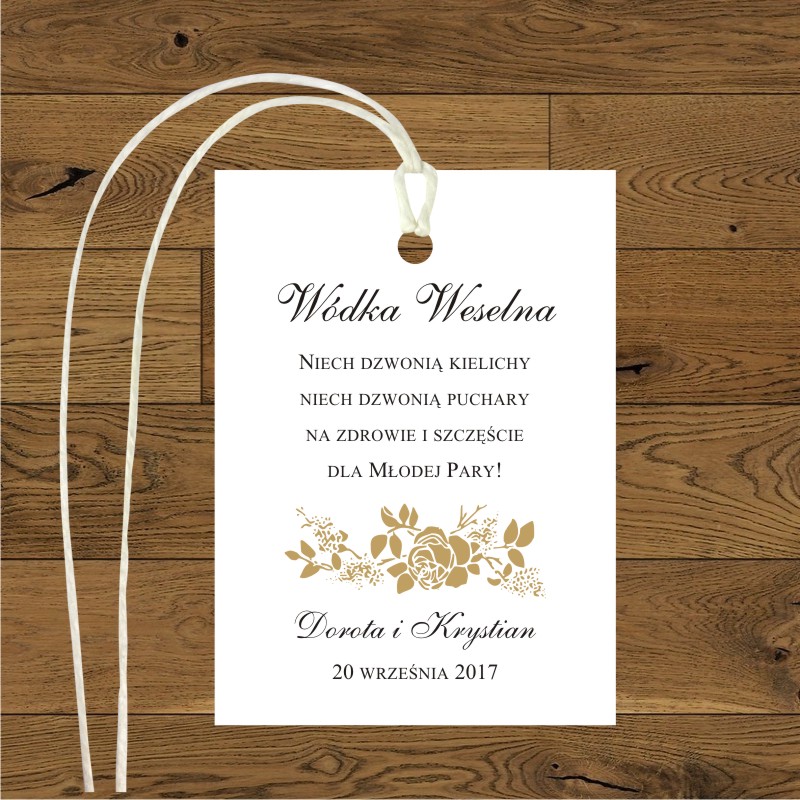 Zaproszenia w stylistyce glamour Złote róże naklejane na złoty mirror