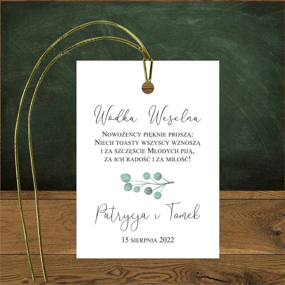 Oryginalne zawieszki na wódkę weselną z eukaliptusem.