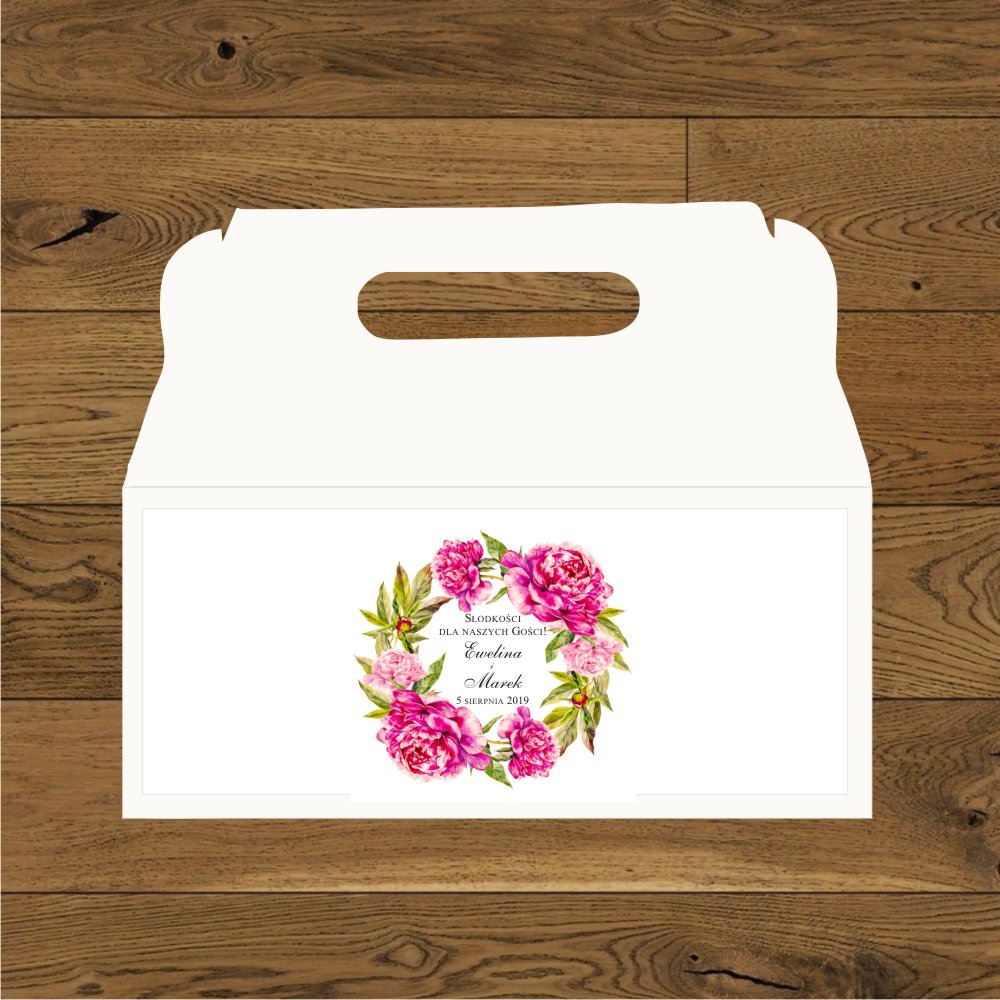 Pudełko na ciasto weselne. Piwonie wianek ciemny róż