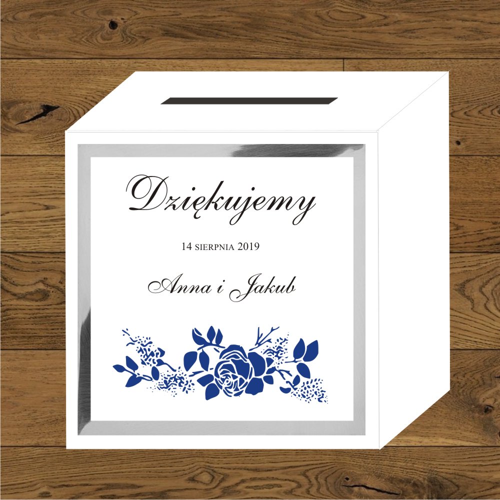 Front do pudełek na koperty Róże granatowe. Ramka - papier srebrny mirror