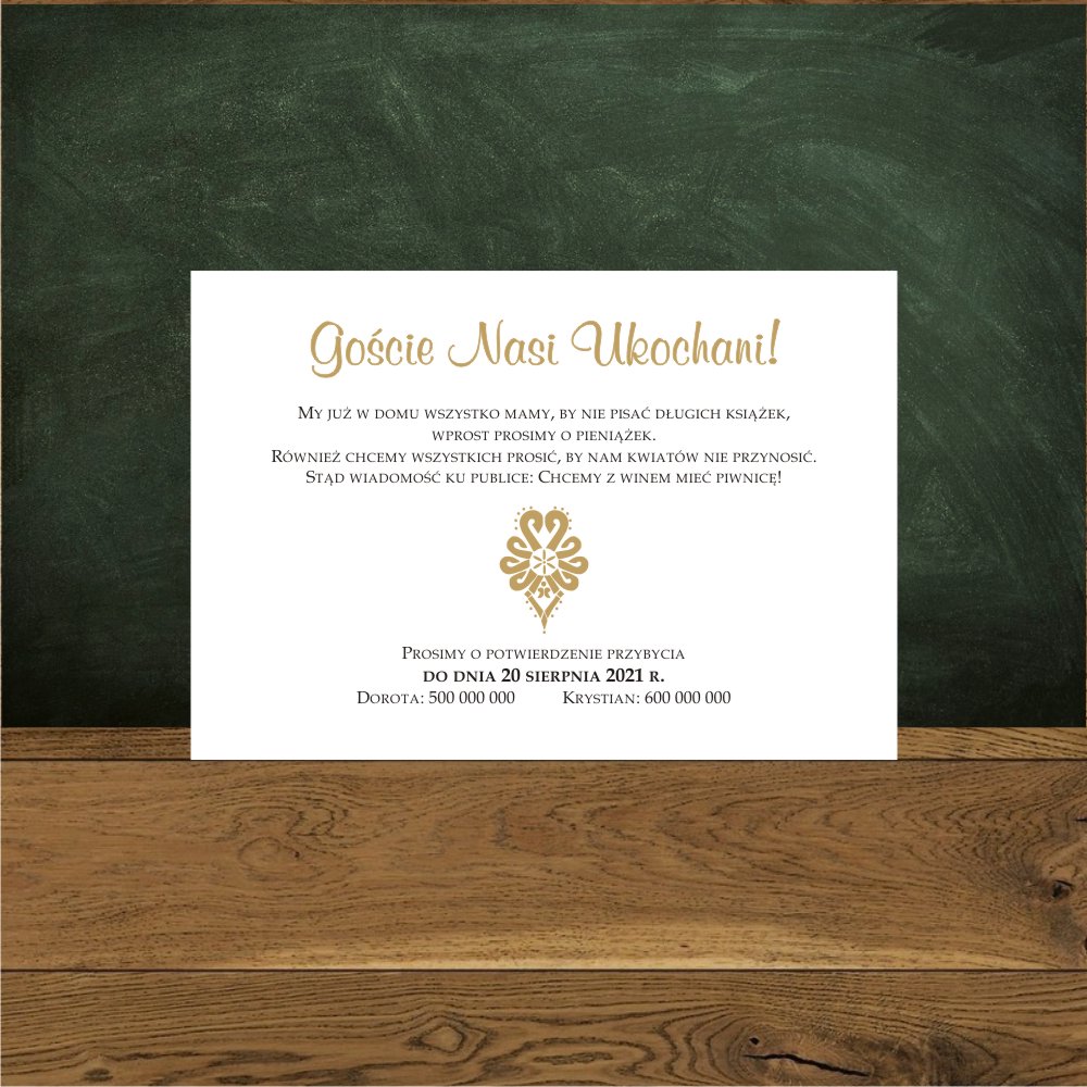 Zaproszenia na ślub góralskie z góralską parzenicą. Parzenica złota, proste