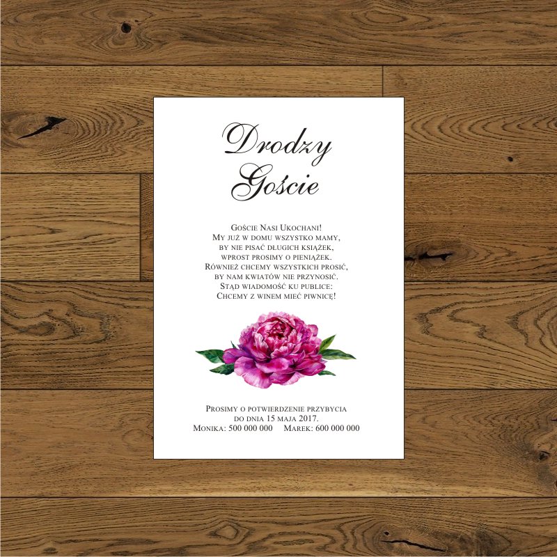 Oryginalne zaproszenia kwiatowe z piwoniami. Piwonie fuksja