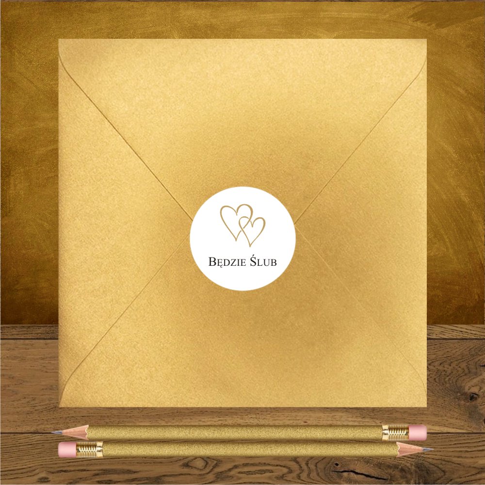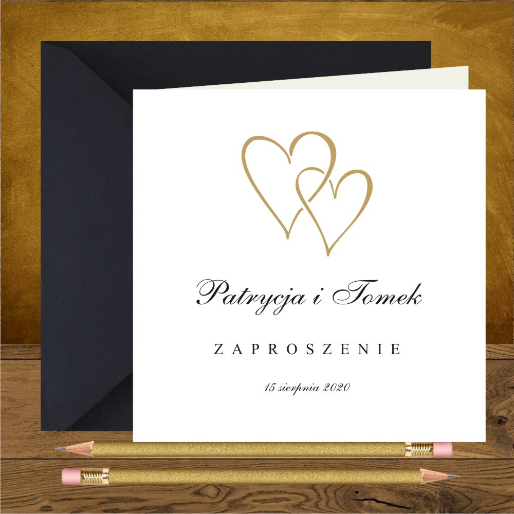 Zaproszenia ślubne minimalistyczne z dwoma złotymi serduszkami