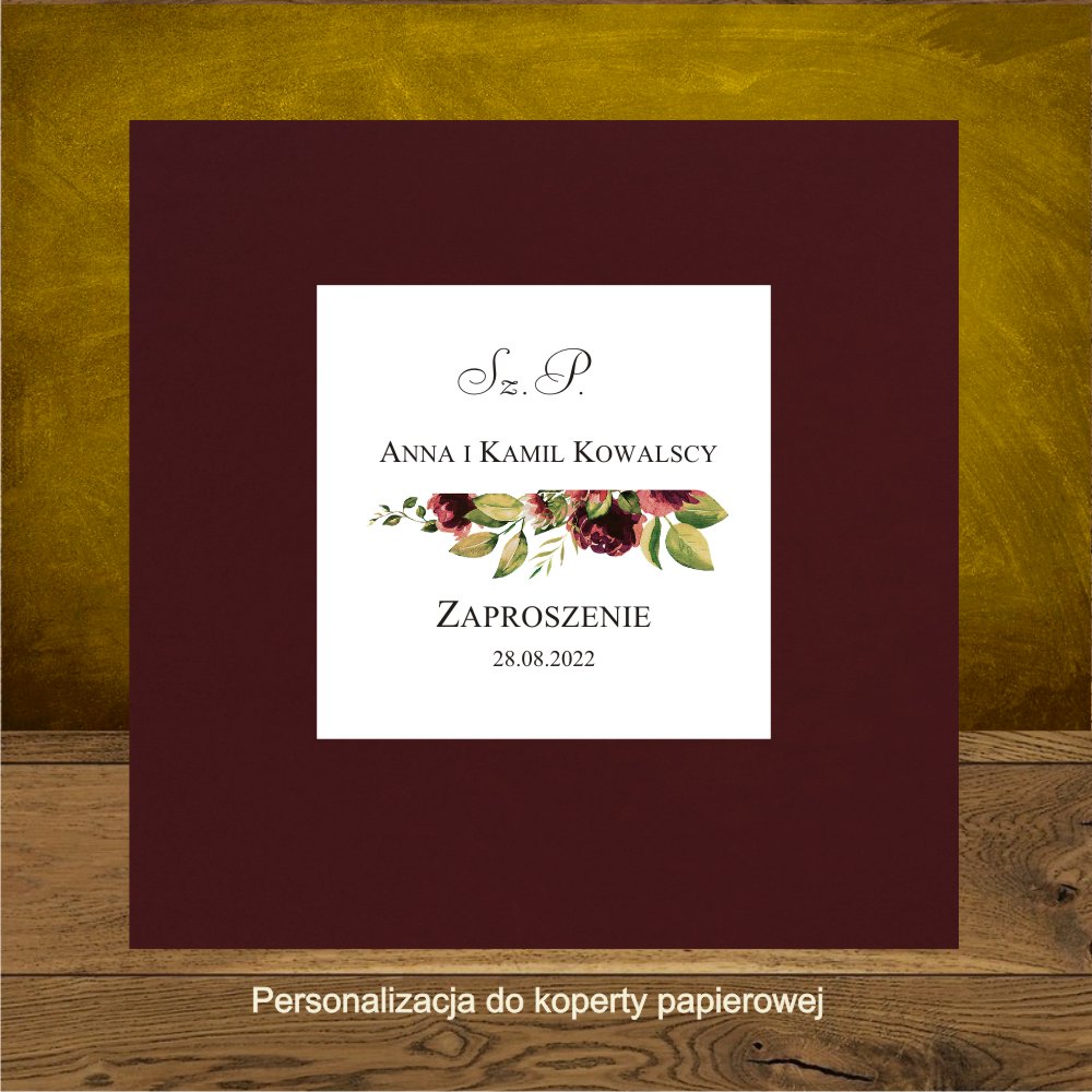 Front do pudełek na koperty - Kwiaty bordo i gałązki