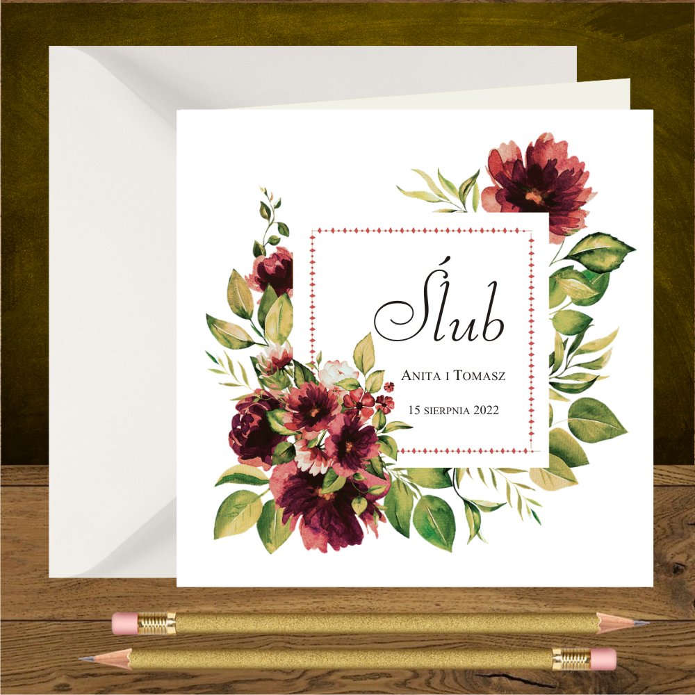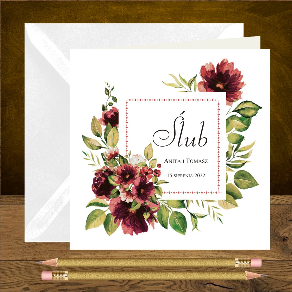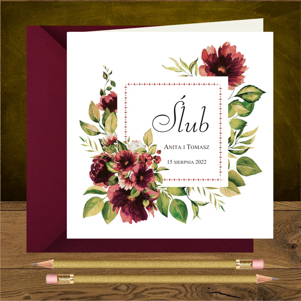 Zaproszenia ślubne kwiatowe, bordowe - modny trend