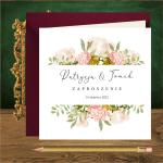 Zaproszenia na ślub i wesele z pastelowymi kwiatami. Kwadratowe, proste. Kwiaty romantyczny ogród