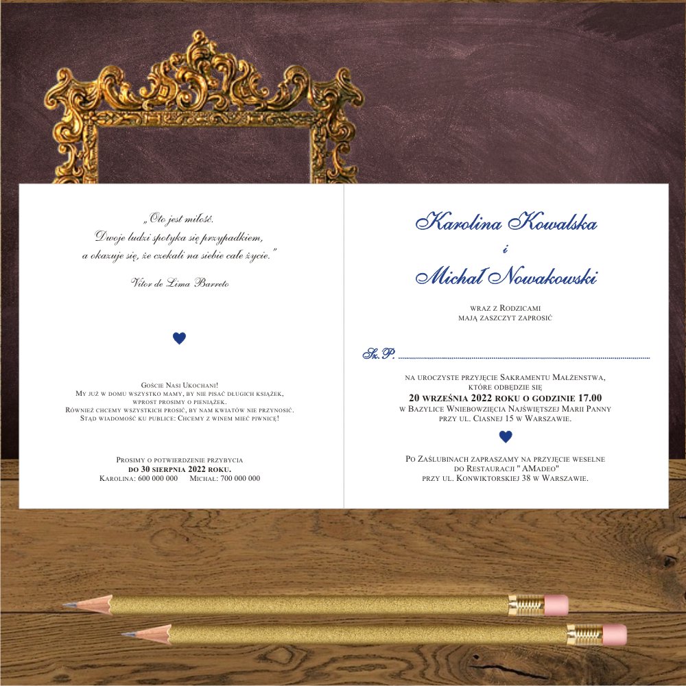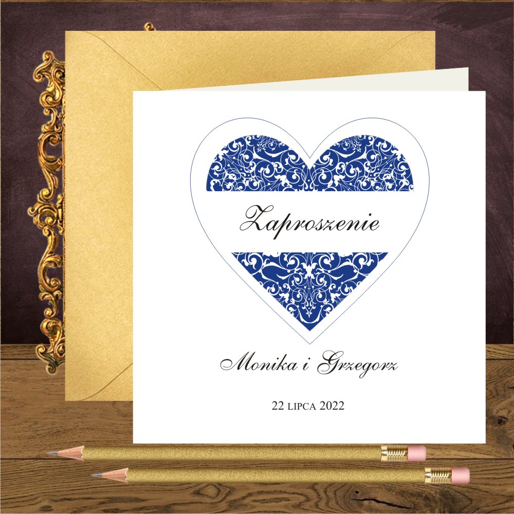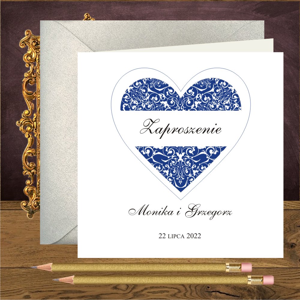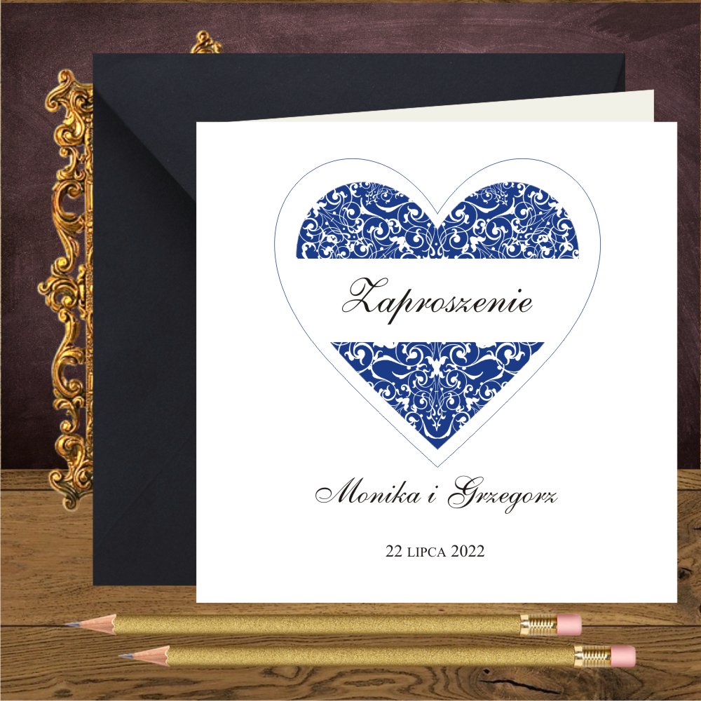 Zaproszenia ślubne z granatowym sercem na mirror. Serce granatowe