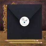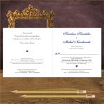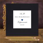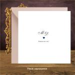 Zaproszenie ślubne w stylistyce glamour z sercem w kolorze granatowym. Wykonane na pięknym białym papierze z ozdobnymi inicjałami na pleckach zaproszenia.