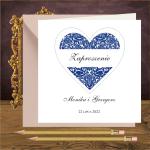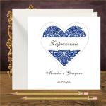 Zaproszenia na slub z granatowym sercem, proste minimalistyczne. Serce granatowe