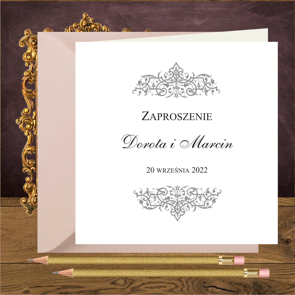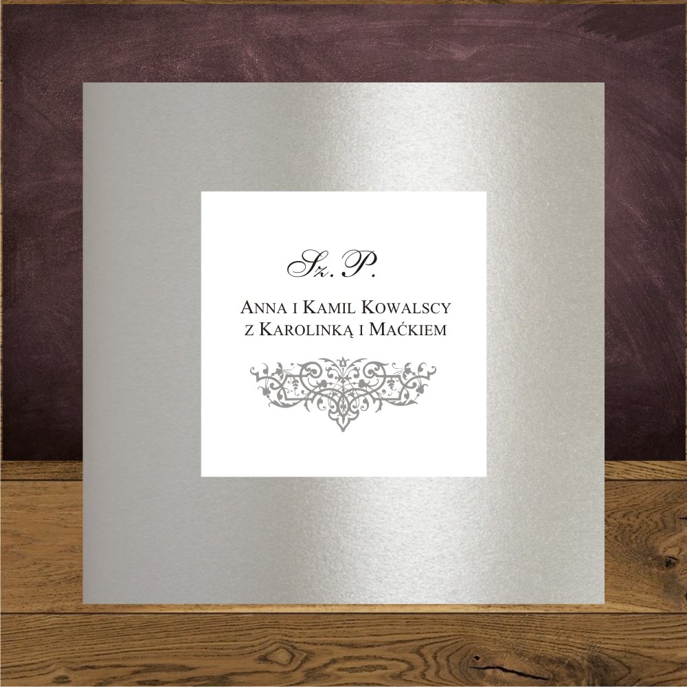 Zaproszenia na ślub ze srebrnymi ornamentami. Oliwia srebro