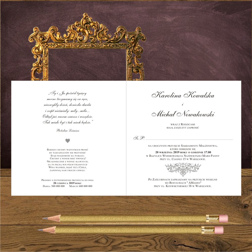 Minimalny dodruk zaproszeń - 15 szt
