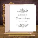 Zaproszenia ślubne glamour z pięknymi ozdobnymi srebrnymi ornamentami.