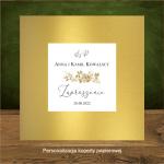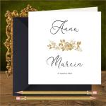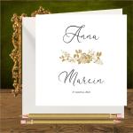 Zaproszenia na ślub ze złotymi różami. Proste, kwadratowe. Róże złote