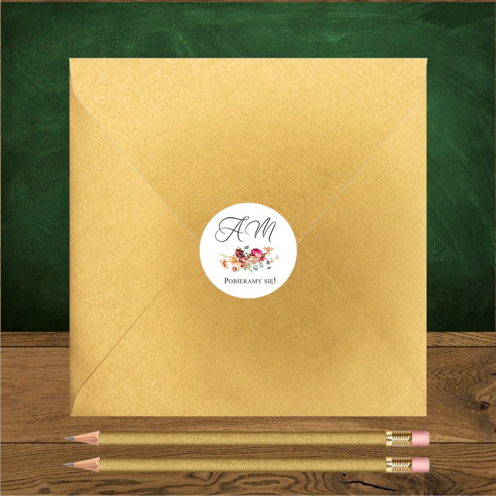| Naklejka w formie kółeczka | Personalizacja koperty papierowej. Kartonik 9 x 9 cm naklejany na kopertę |