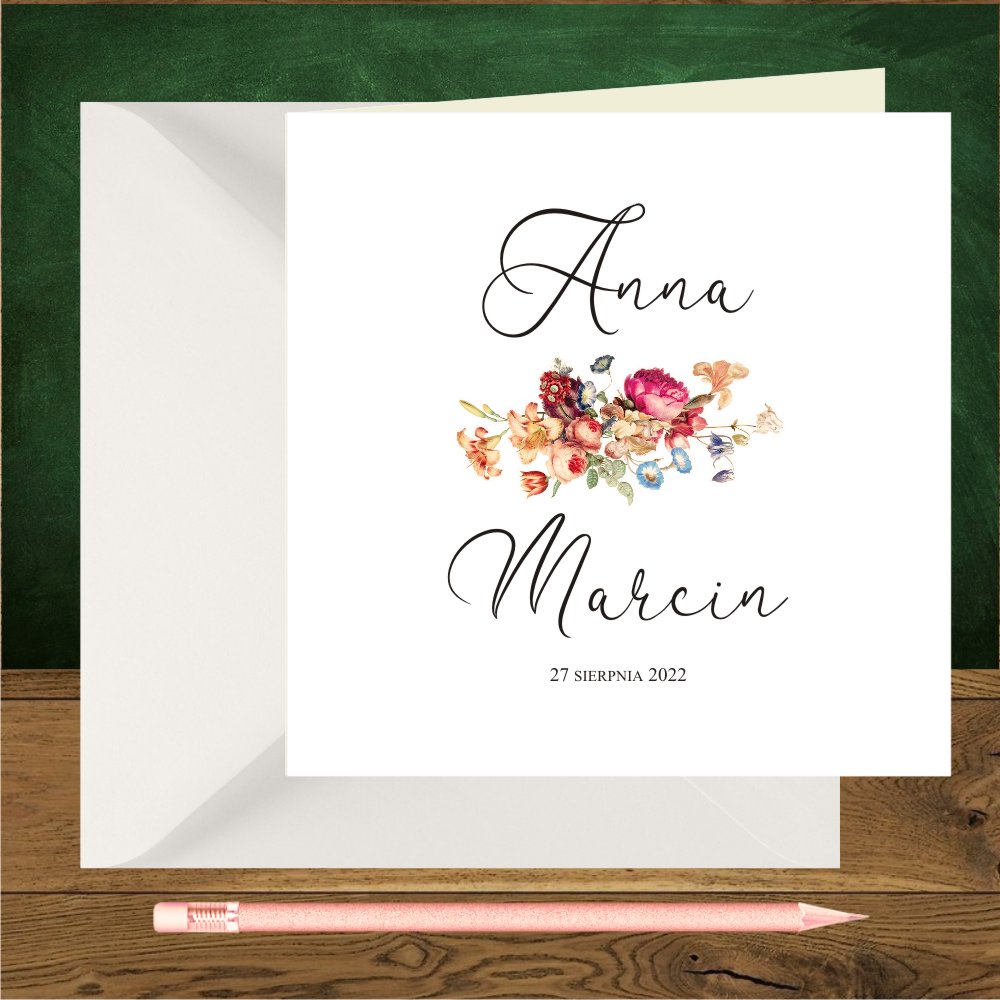 Zaproszenia ślubne Angielskie róże retro flanella - fantazyjne. Kwadratowe proste