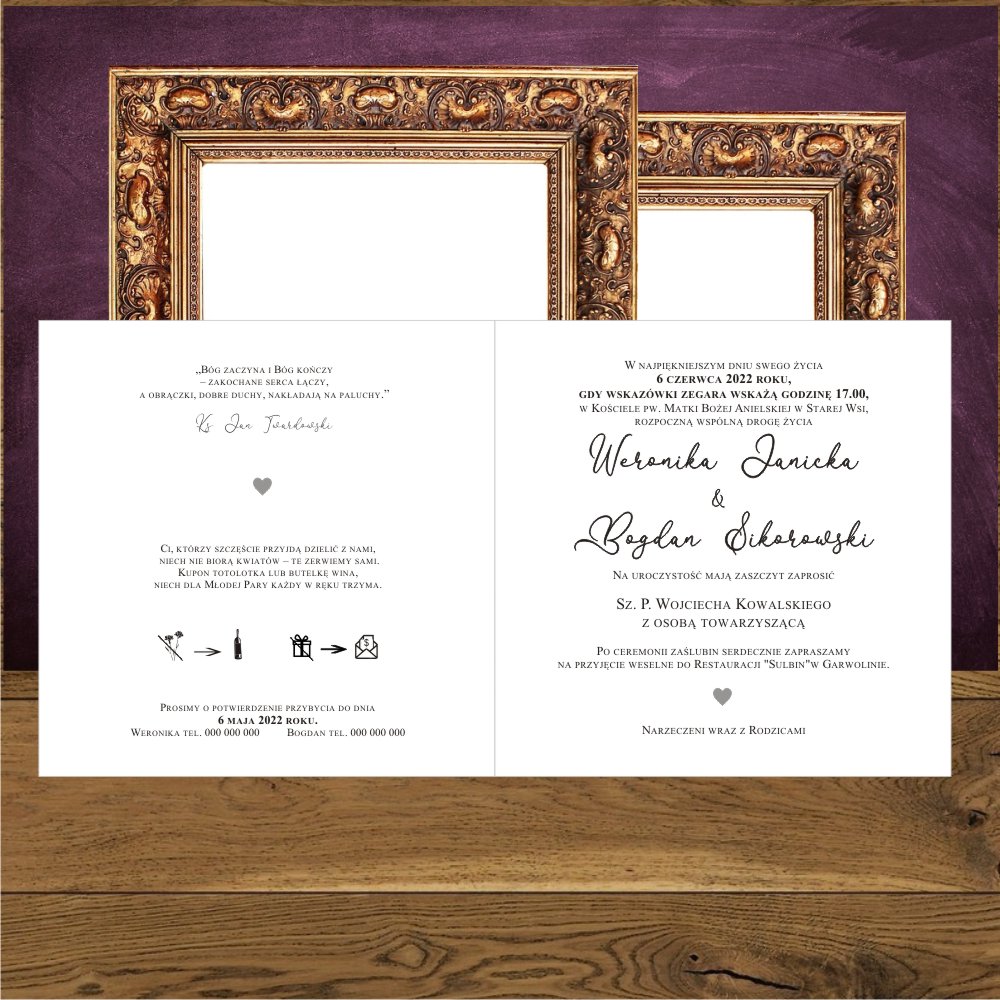 • Format zaproszenia: 14 x 14 cm po złożeniu