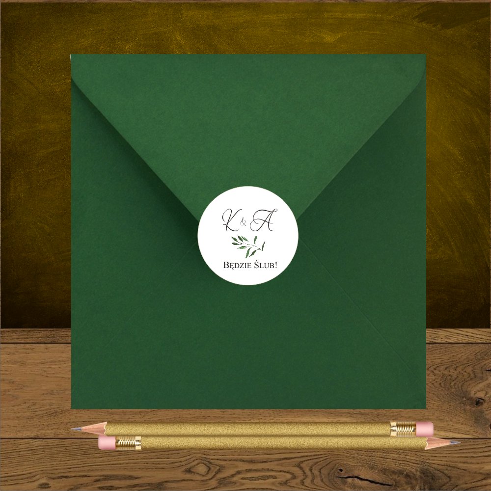Naklejka na kopertę Druk na naklejce z papieru takiego jak zaproszenia. W przykładzie koperta zielona |