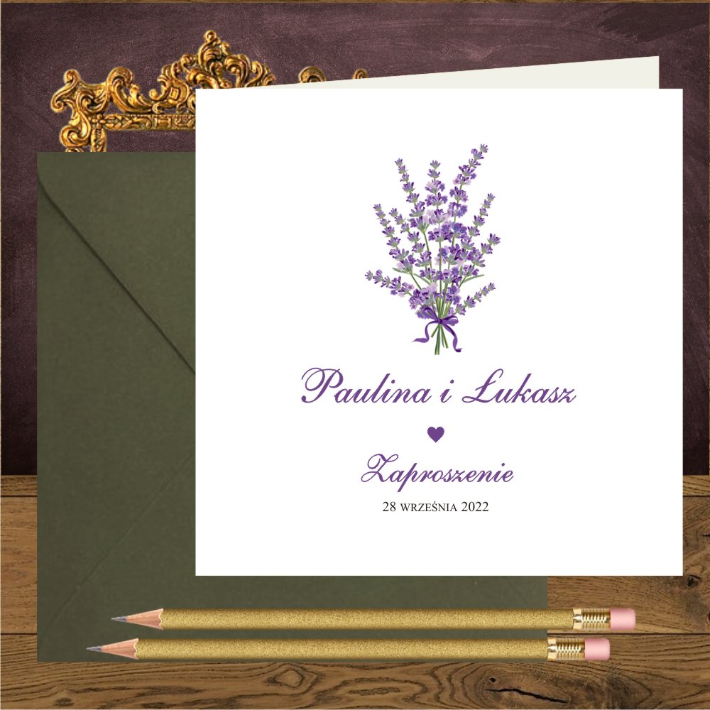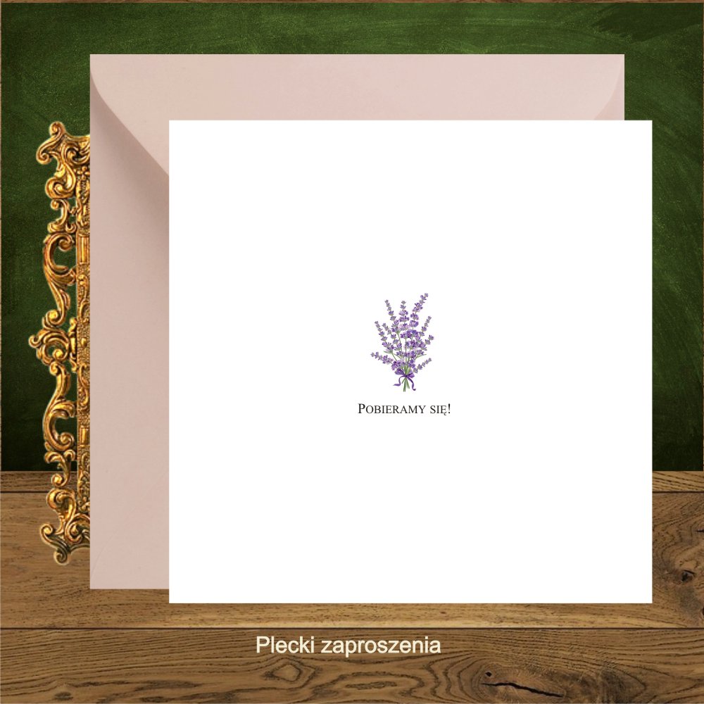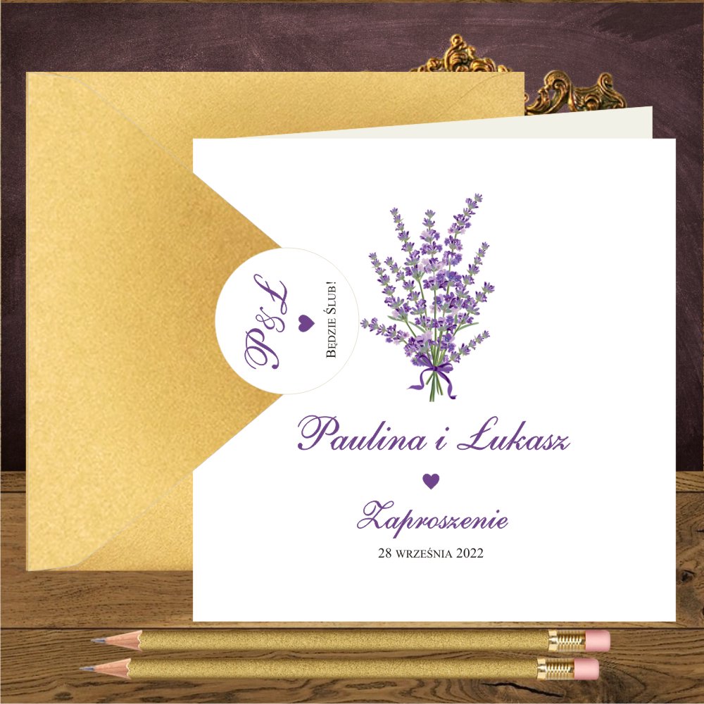 Zaproszenia ślubne z lawendą koperta z wyklejeniem