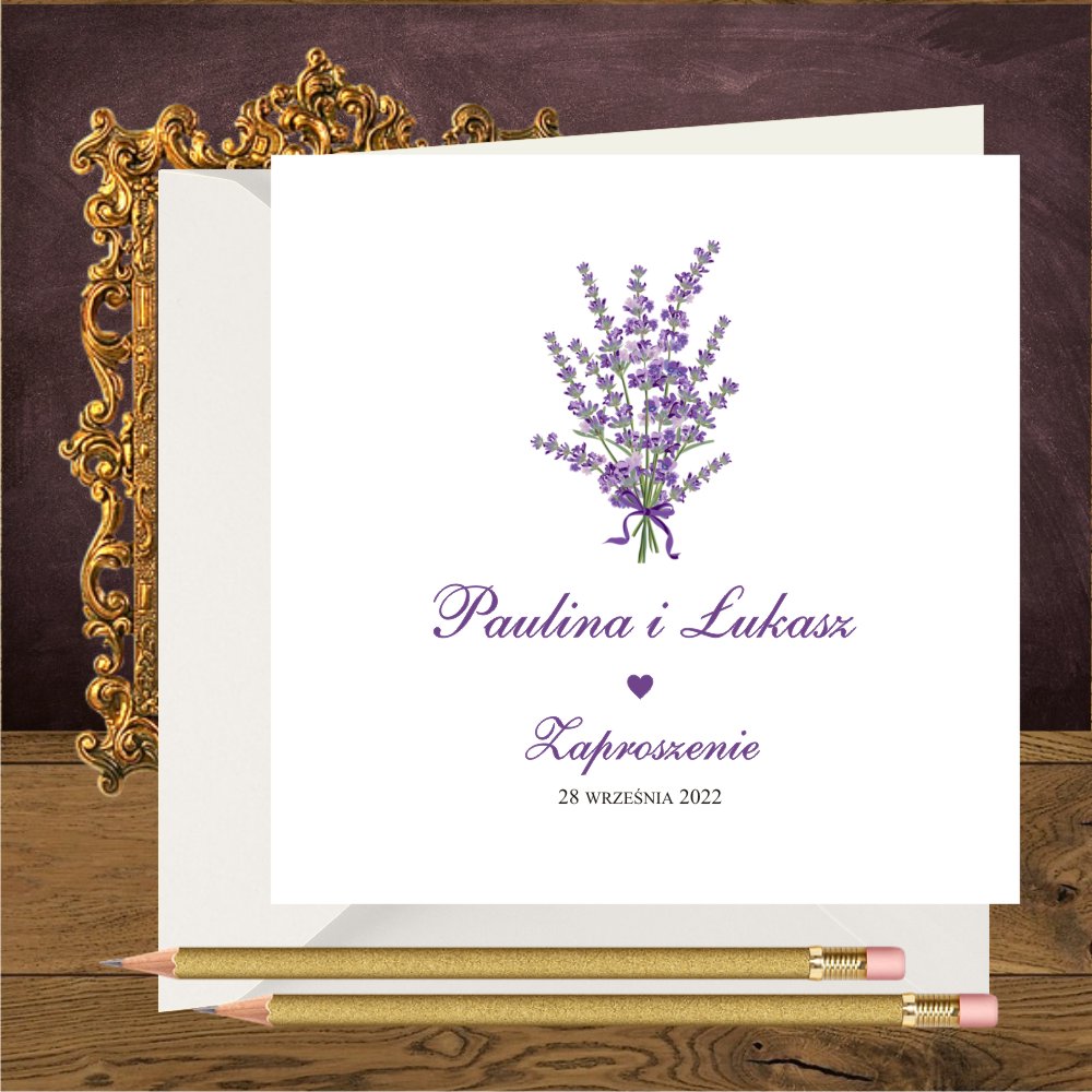 Zaproszenia slubne z lawendą w stylu boho. Lawenda proste