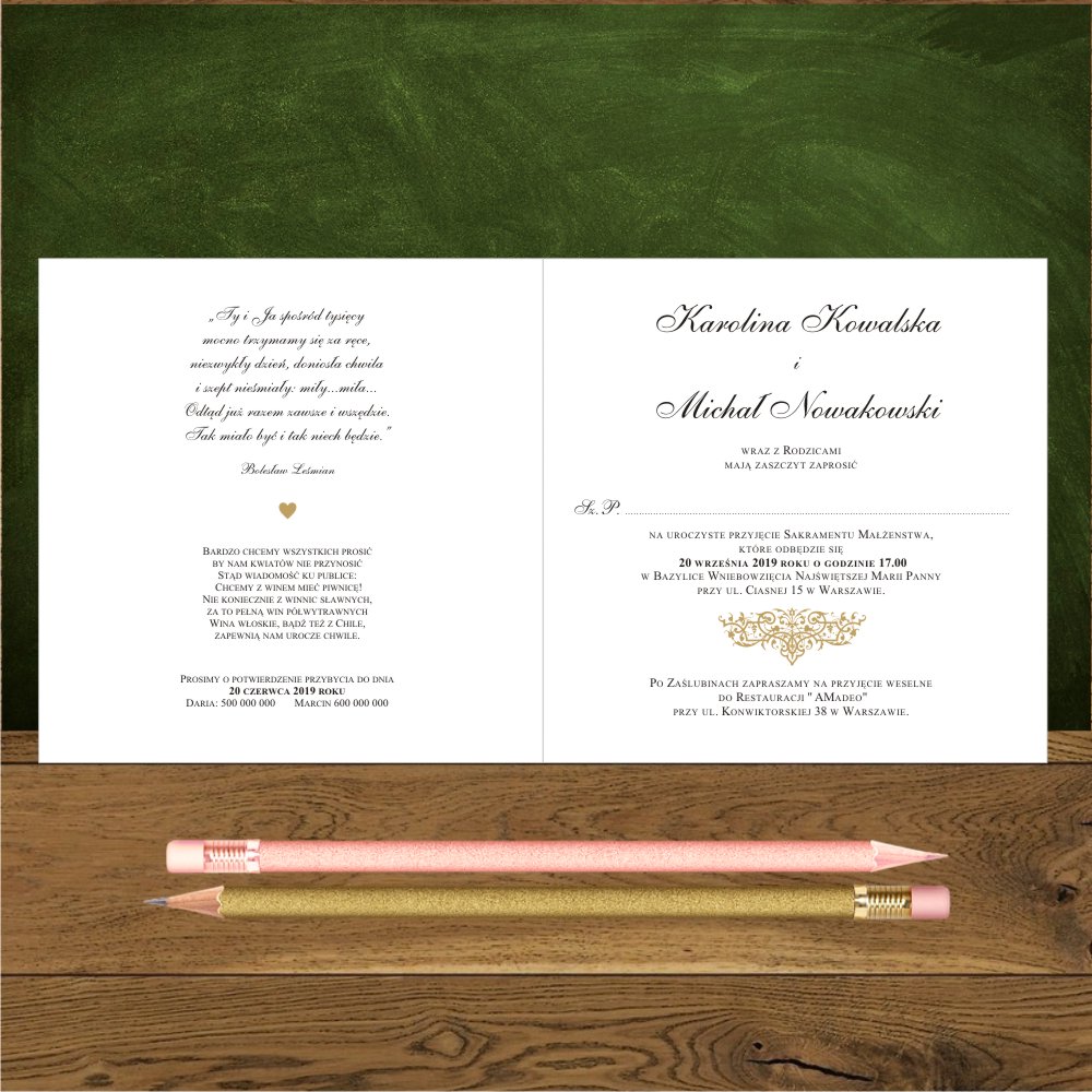 Zaproszenia na ślub eleganckie złoty ornament Oliwia