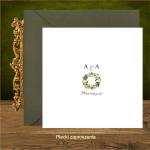 Zaproszenia z liśćmi w butelkowej zieleni mistrzowsko łączą sie z kopertą w kolorze zieleni butelkowej, to bardzo elegancki zestaw, jeśli papeteria ślubna nawiązuje kolorem do dodatków na sali weselnej