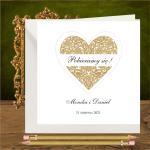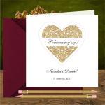 Zaproszenia ślubne glamour z sercem na złotym kartoniku. Serce złote