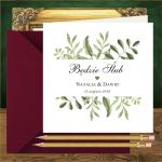 Do zaproszeń z zielonymi listeczkami zamówisz dopasowane stylistycznie