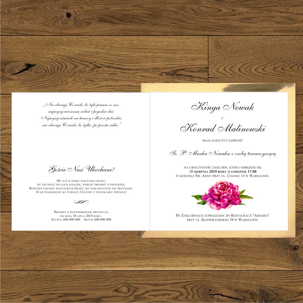 Zaproszenia ślubne piwonie ciemny róż