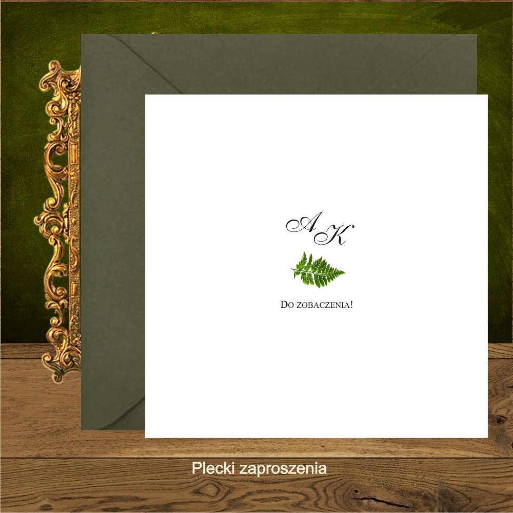 Czasem wystarczy jeden listek paproci na białym papierze, aby zaproszenie weselne nabrało niezwykłej elegancji. Dodatkowo wyjątkowo pięknie to proste zaproszenie prezentuje się na pleckach,