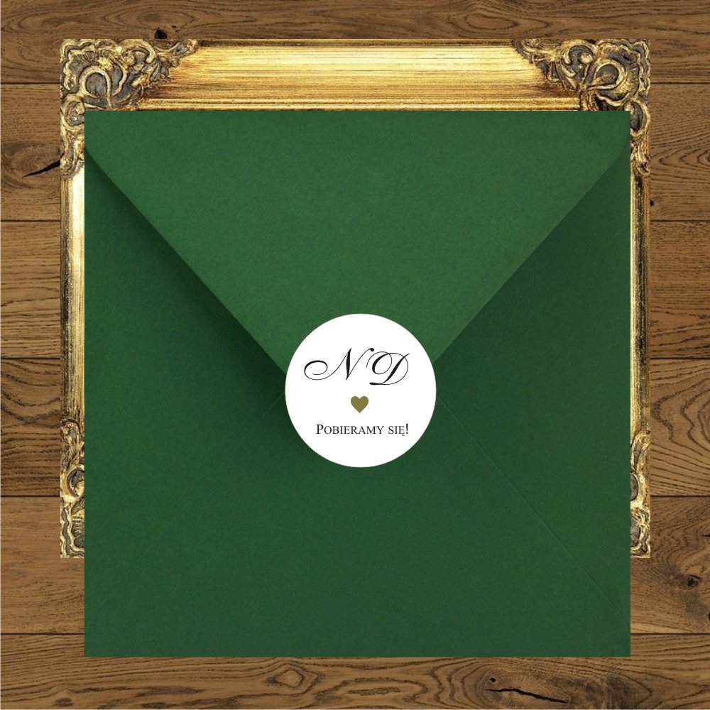 Naklejka na kopertę do zaproszenia Wykonana z papieru takiego jak w zaproszeniach. W przykładzie koperta zielona |